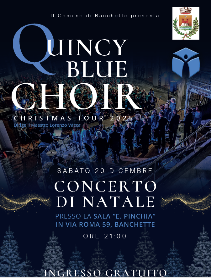 In occasione delle feste natalizie, l'Amministrazione Comunale è lieta di invitarvi allo spettacolo musicale che si terrà sabato 20 dicembre presso il salone "E. Pinchia" di Via Roma 59, a Banchette.
