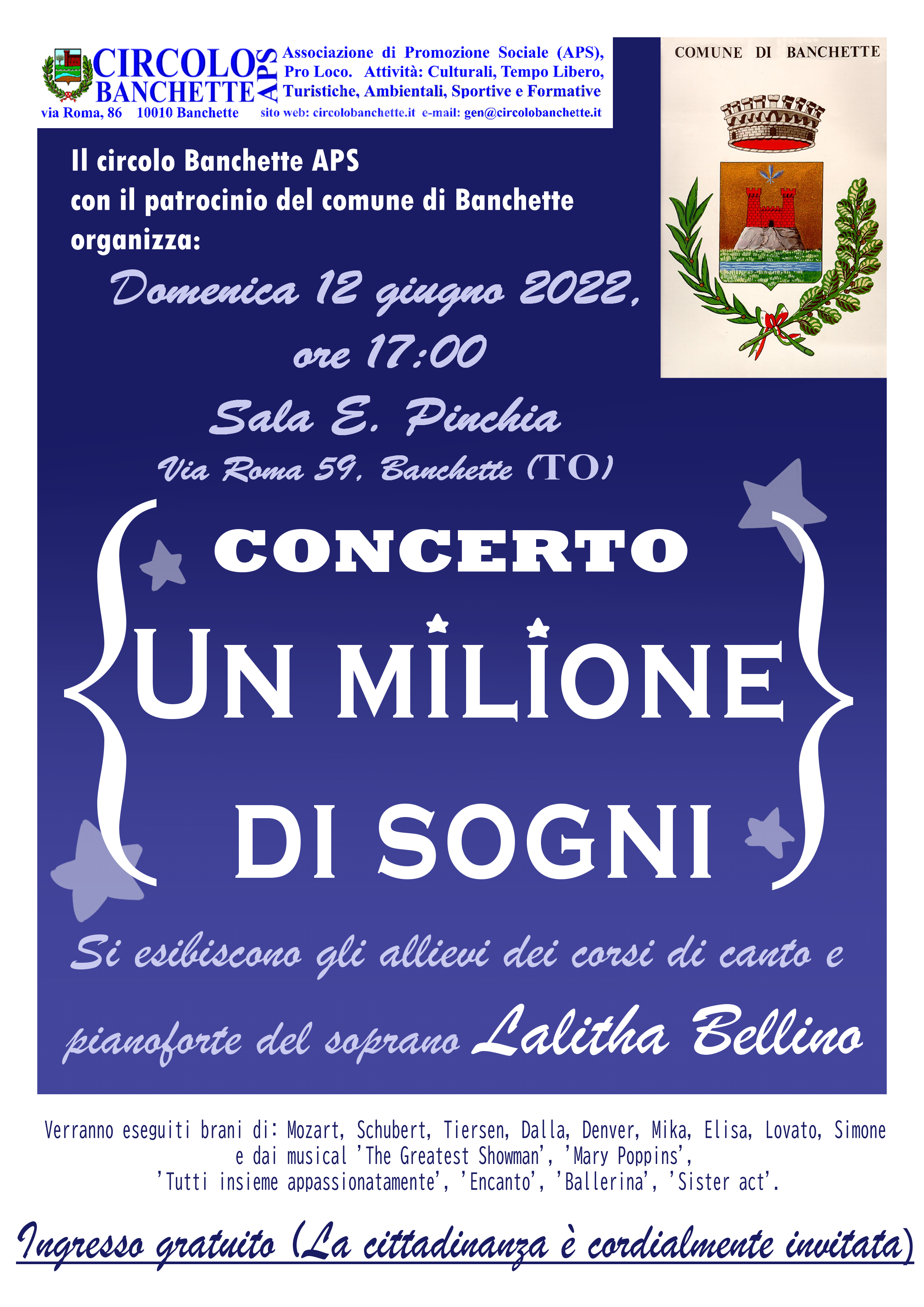 12 giugno ore 17.00 - Sala comunale "E. Pinchia" di Banchette.