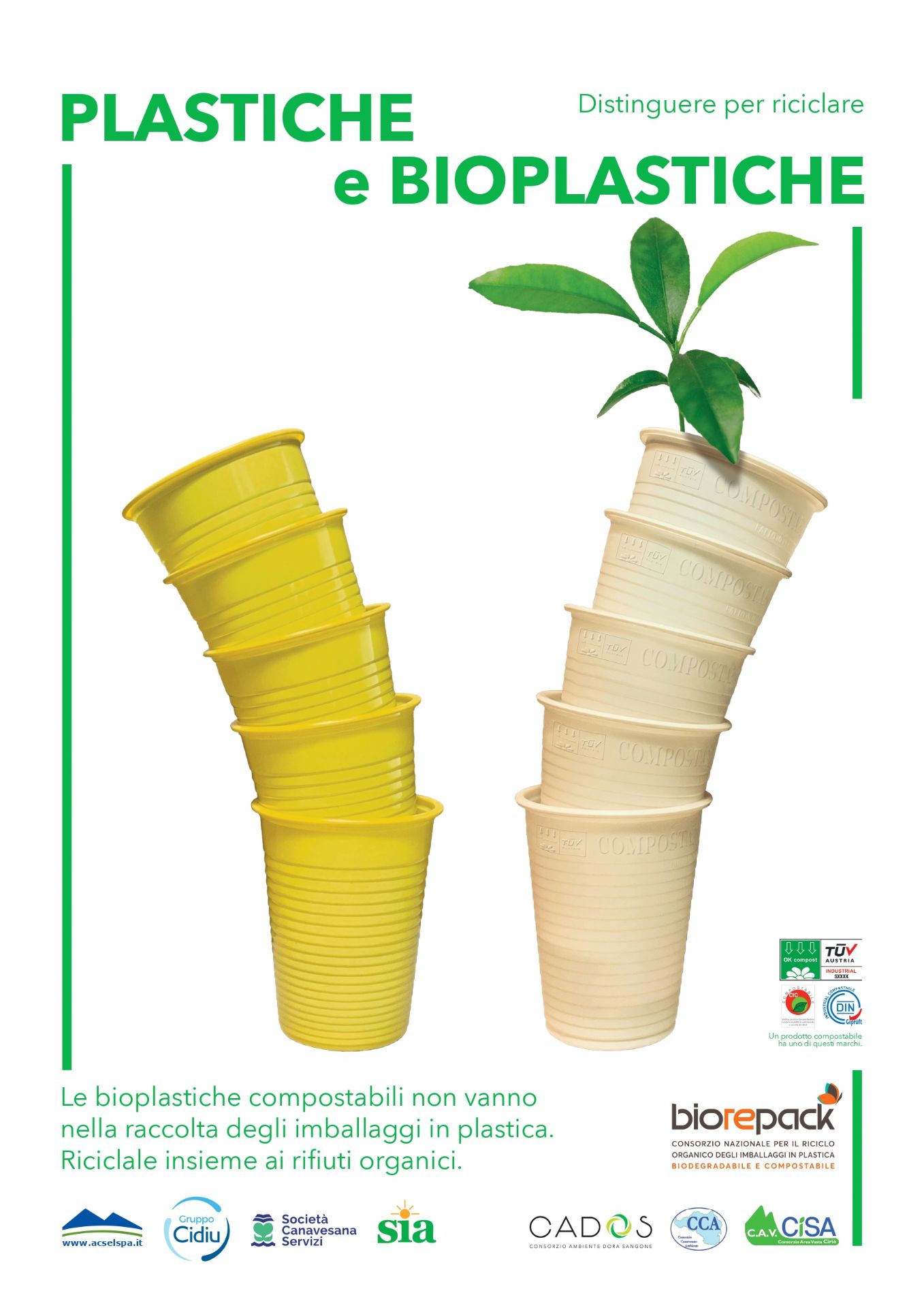 Saper riconoscere e riciclare correttamente la bioplastica compostabile è importante: per questo Società Canavesana Servizi spa, insieme alle aziende della Rete d’Imprese Corona Nord-Ovest e in collaborazione con il Consorzio Biorepack propone la campagna di comunicazione “Plastiche e Bioplastiche. Distinguere per riciclare”.