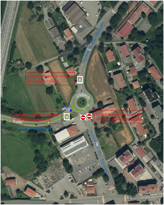 • chiusura di un accesso della rotatoria della SP 69 (rotatoria Cappellaro / iN’s) provenendo dall’incrocio semaforico di via Castellamonte.