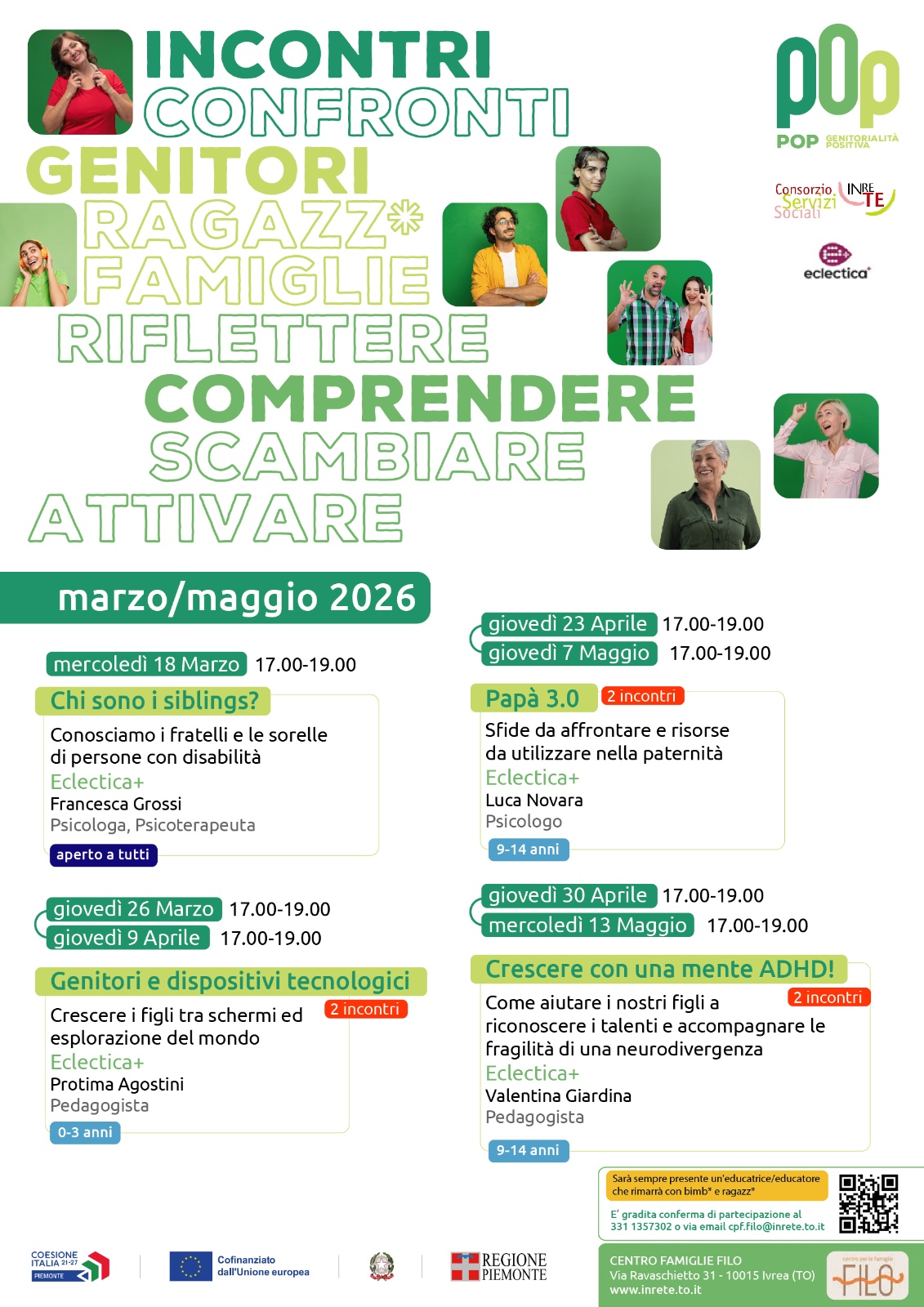 Incontri rivolti a genitori con figli in diverse fasce d'età.